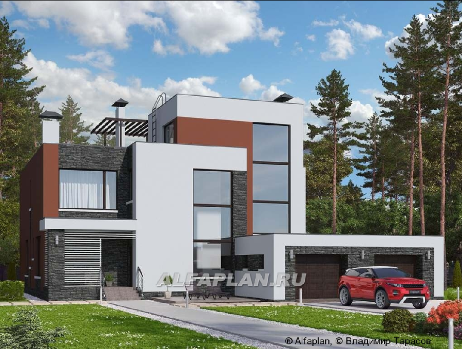 Архитектурное бюро «Альфаплан» предлагает много проектных новинок. Это как новые проекты серии «Акварель» — современные яркие коттеджи, о которых я уже писал. Так и серия проектов домов с плоскими кровлями «ФУТУРА» .