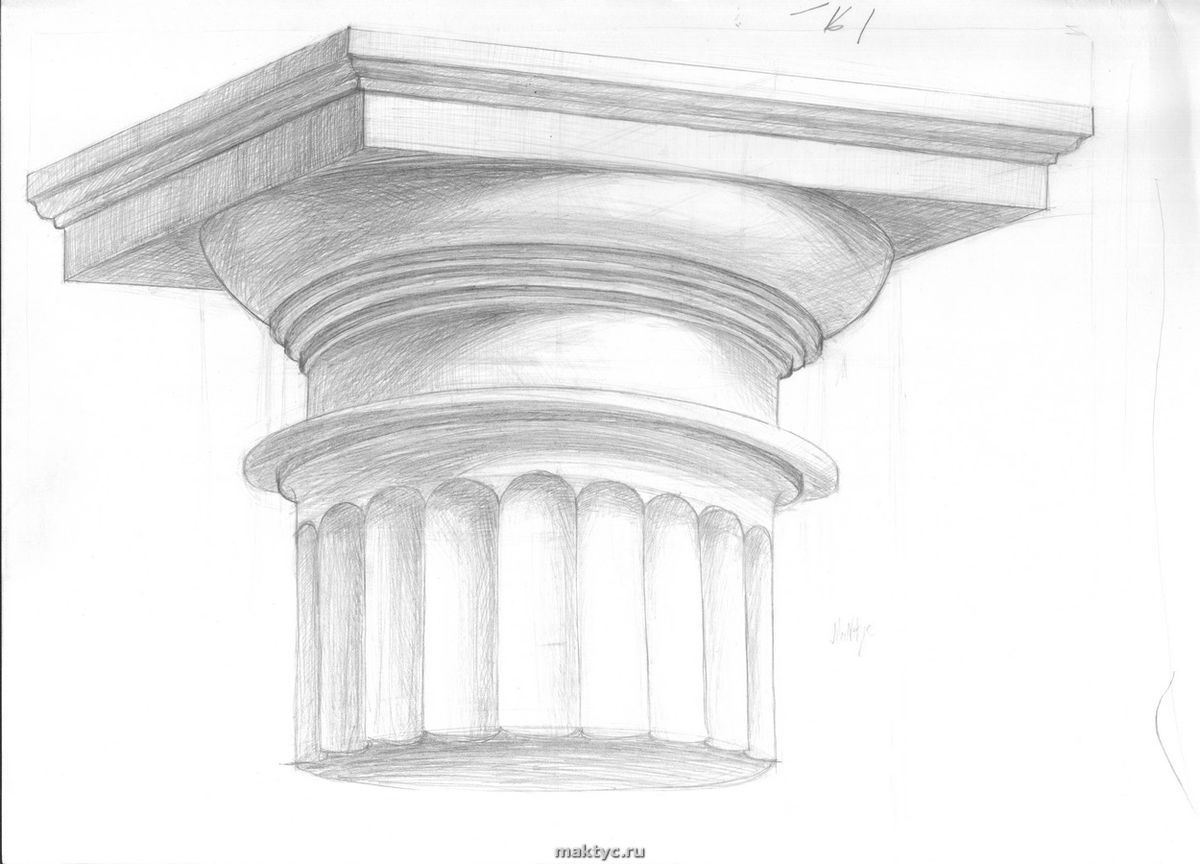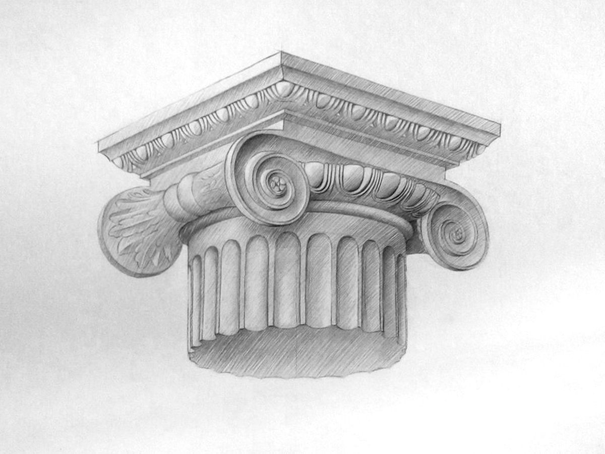 Одна из первых дисциплин — это архитектурная графика. Начиная с простых предметов, задания усложняются, и на выходе делается отмывка какого-либо здания в классическом стиле. Я «отмывал» здание биржи на стрелке Васильевского острова, архитектор Тома де Томон.