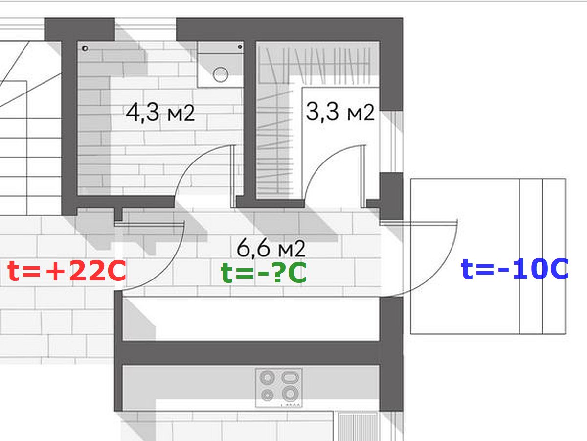 Пришедший в нам недавно Застройщик попросил в его проекте сделать такое же решение. Отказаться от этого его убедил простой вопрос. Я его спросил: «Представьте себе, что в доме зимой у вас +22 градуса, на улице – минус 10 градусов. Какую расчетную температуру нам заложить в проект в это помещение на входе?» И он не смог на этот вопрос ответить.