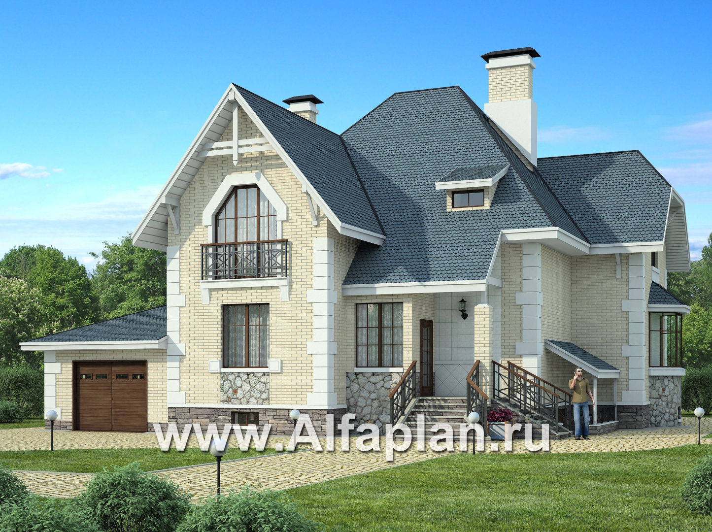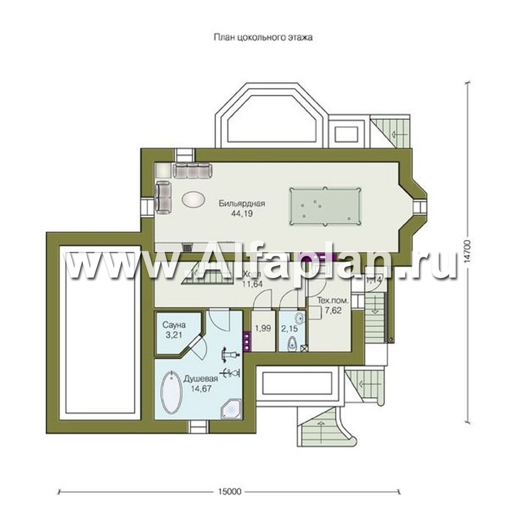 «Приорат Плюс» - проект дома с мансардой, кабинет на 1 эт, с террасой и с эркером, с биллиардной в цокольном этаже, гараж на 1 авто