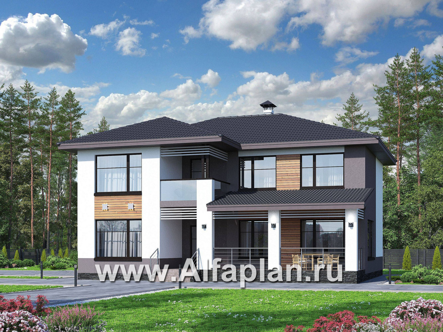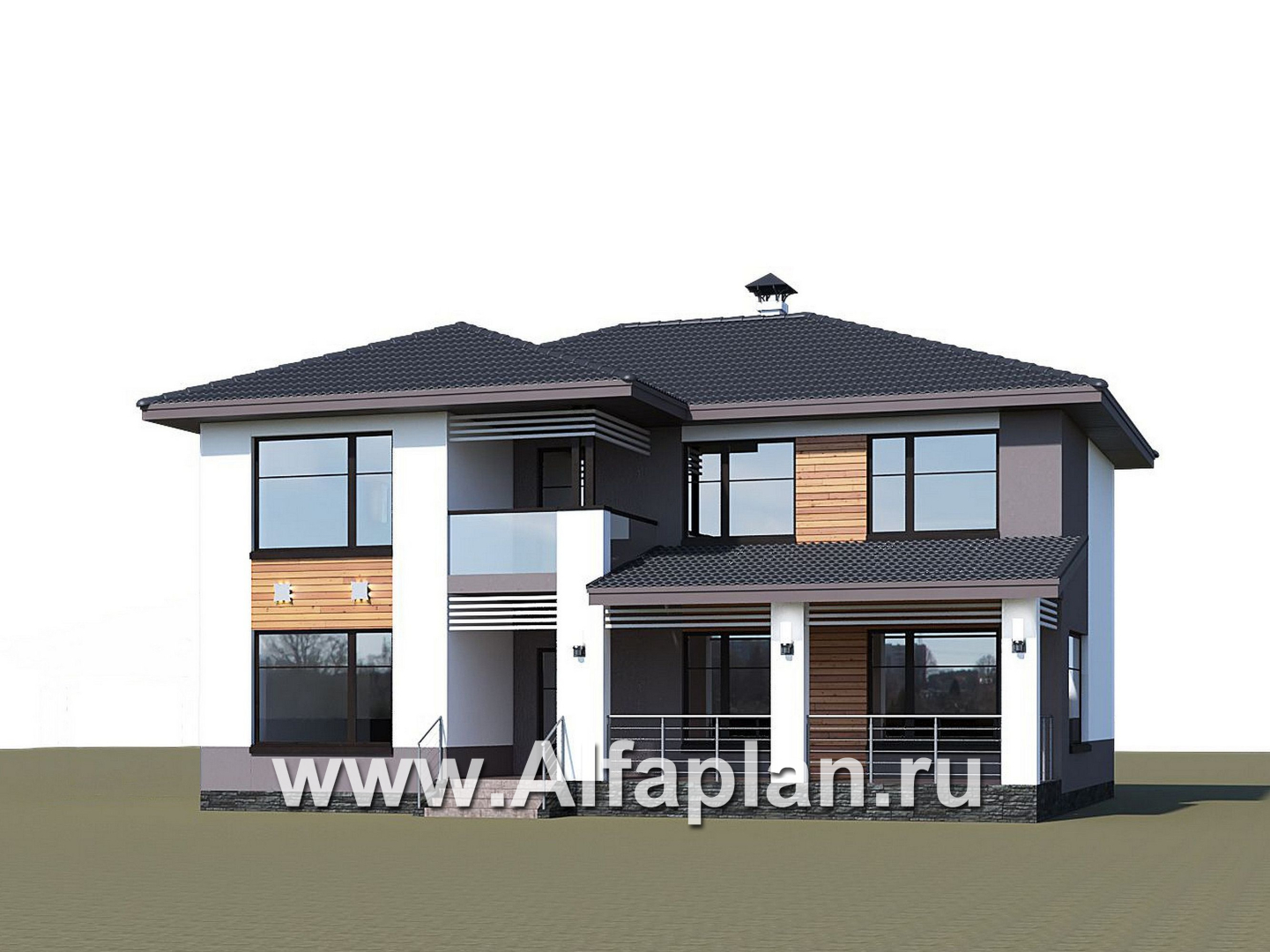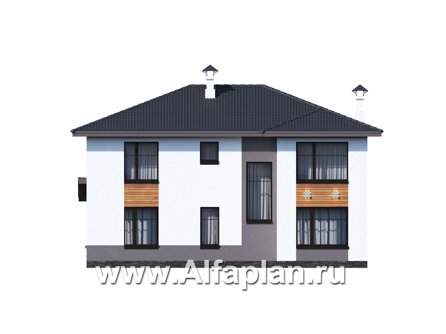 «Ренуар» - проект двухэтажного дома, планировка с двумя спальнями на 1 эт и вторым светом, фасад штукатурка