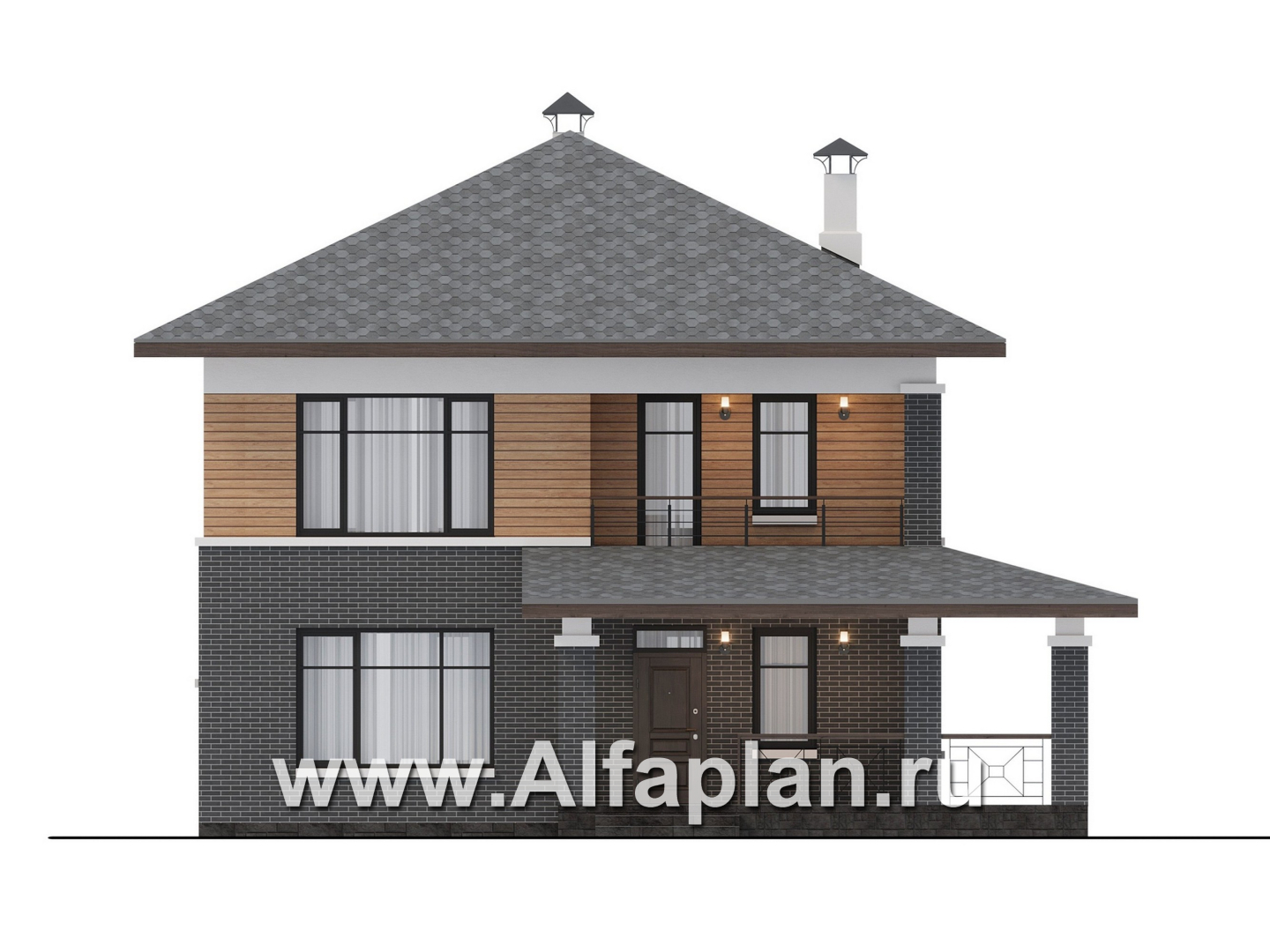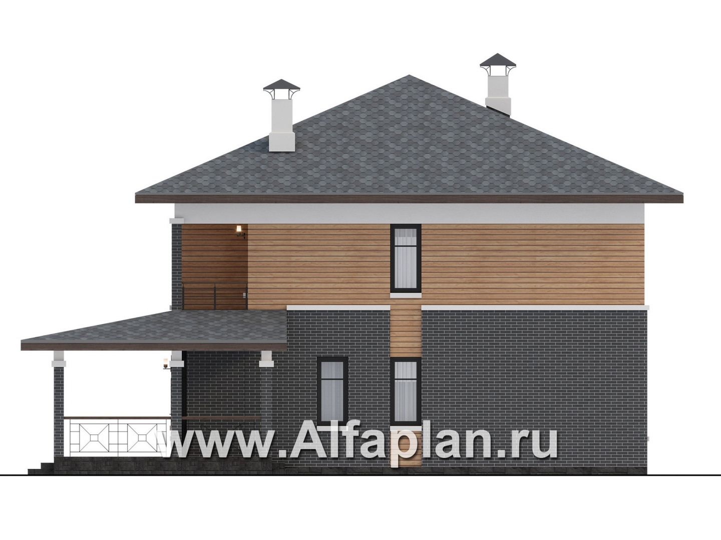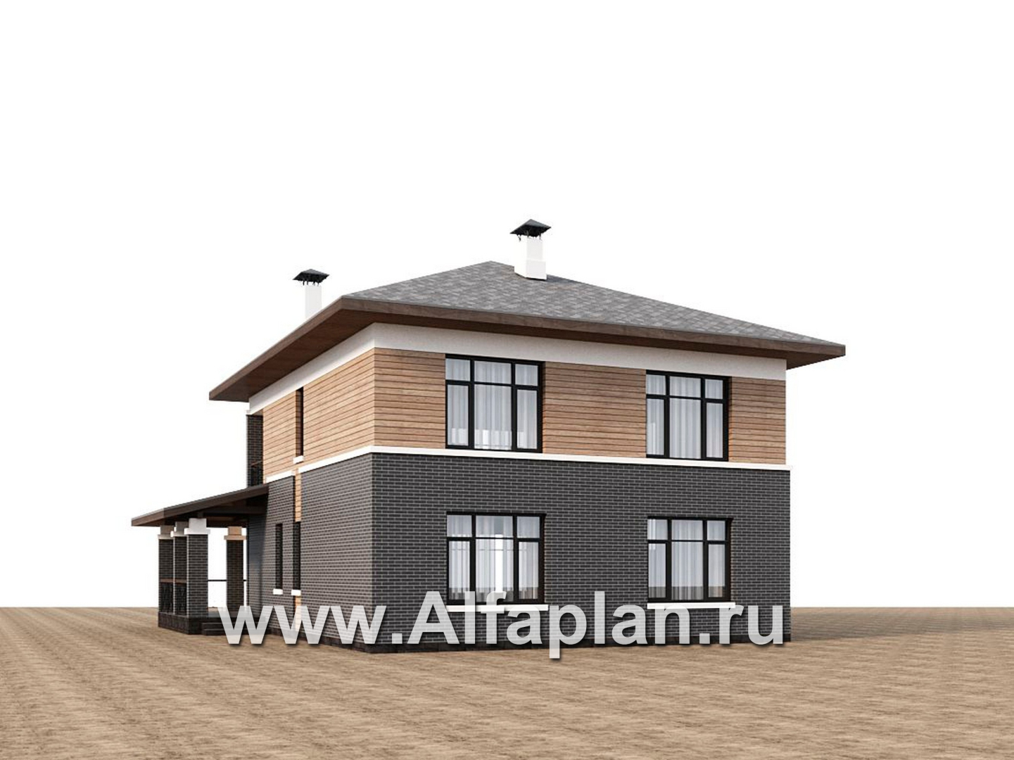 945B «Отрадное» - проект двухэтажного дома из газобетона, в стиле Райта, с террасой на главном фасаде