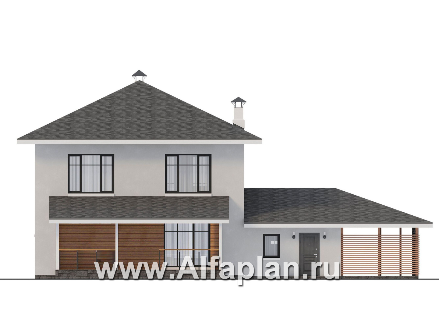 941B-2-S «Селигер» - проект двухэтажного дома из газобетона, с гаражом на 2 авто, фасады из штукатурки