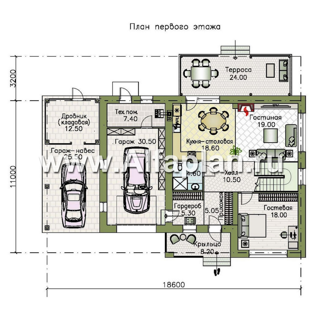 «Сайма» - проект двухэтажного дома из кирпичей, с террасой, в баварском стиле, с гаражом
