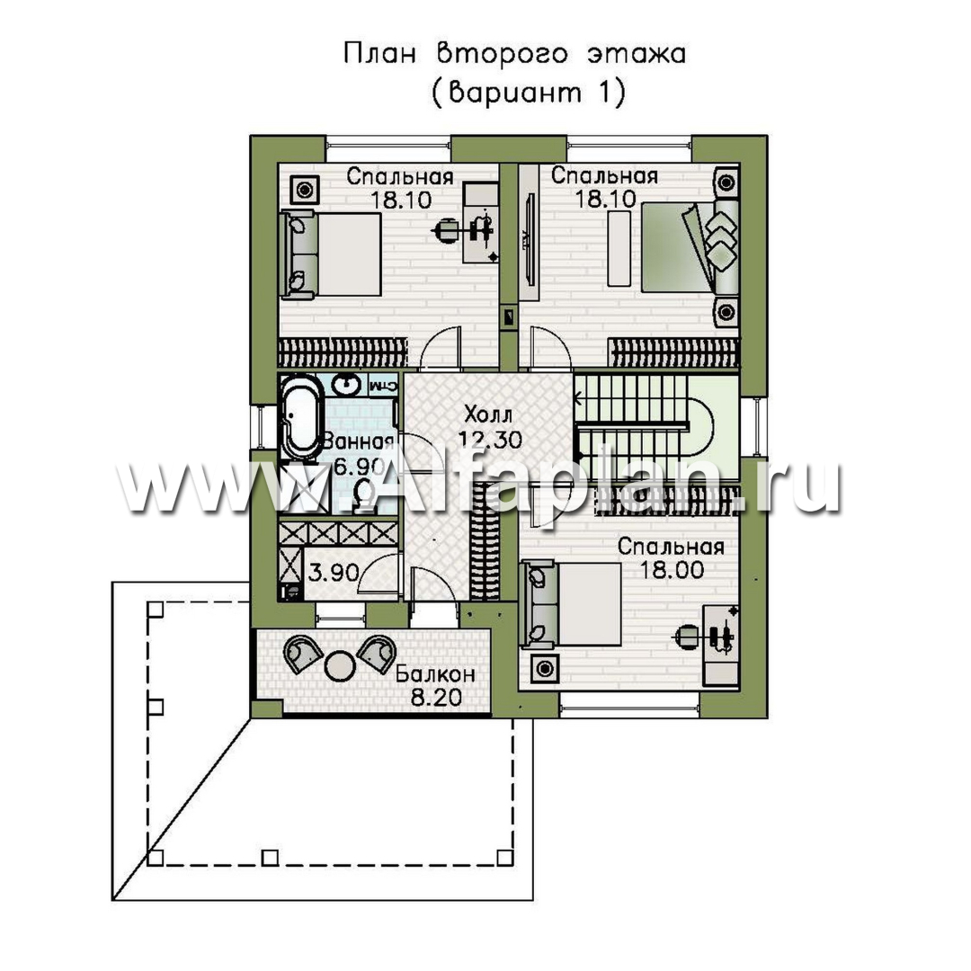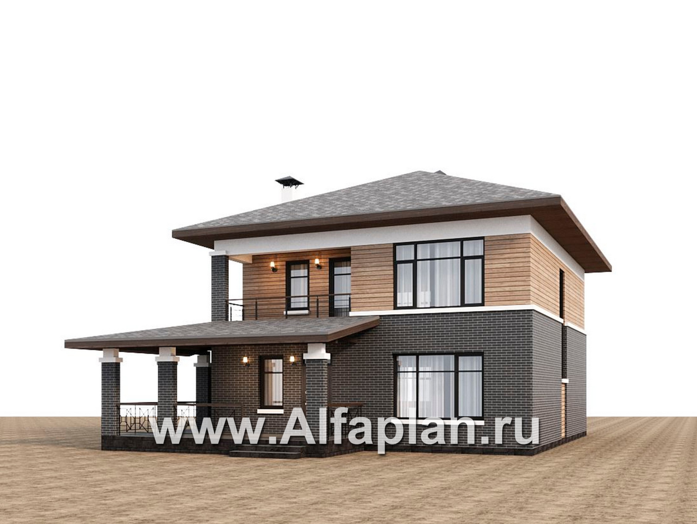 945B-S «Отрадное» - проект двухэтажного дома из газобетона, в стиле Райта, с террасой на главном фасаде