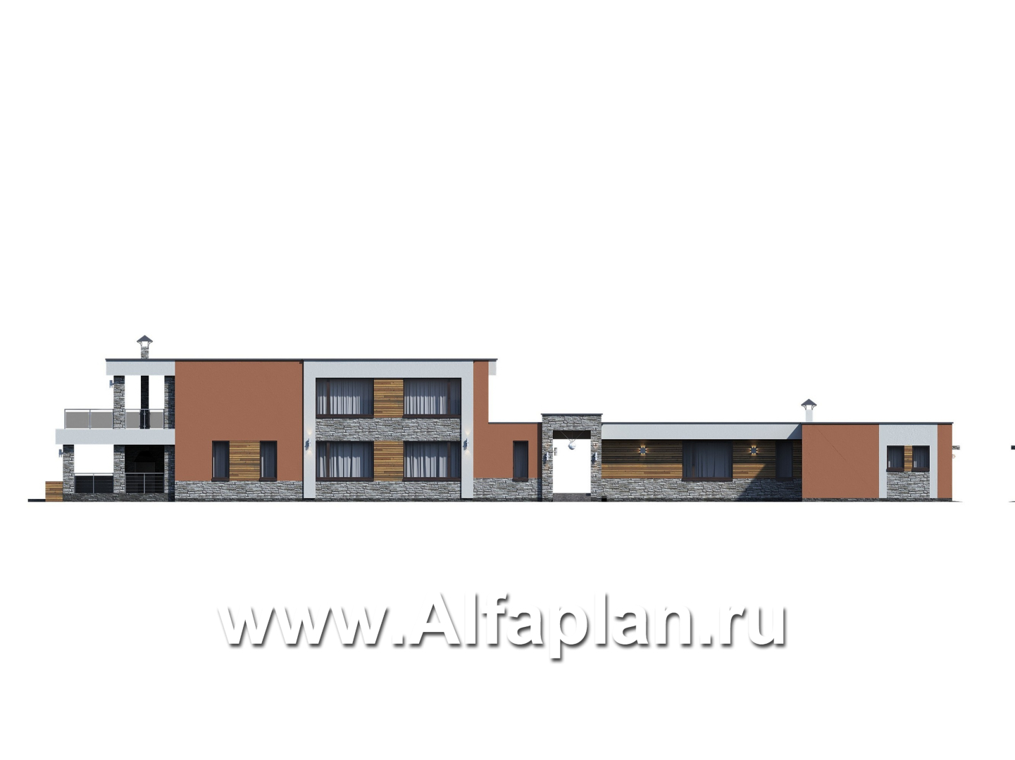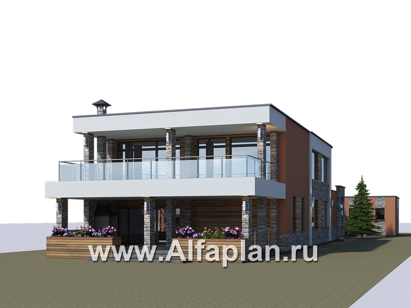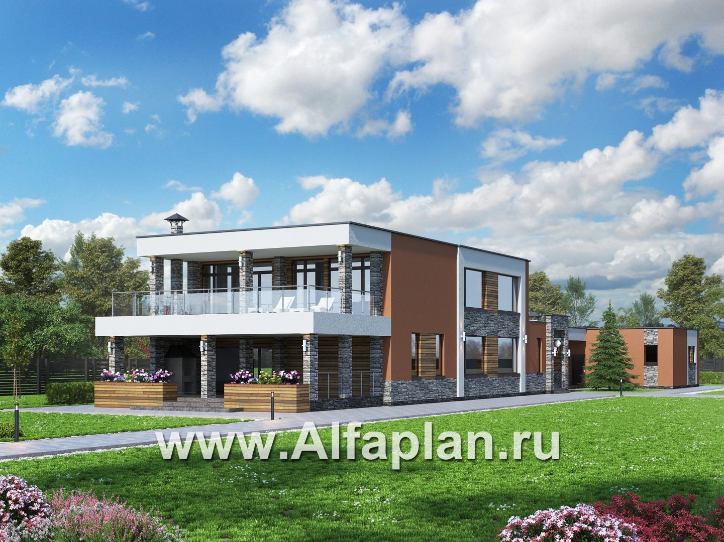 «Hot Space» - проект двухэтажного дома в стиле хай-тек, с плоской крышей, вилла со вторым светом, мастер спальня, сауна и гараж на 4 авто