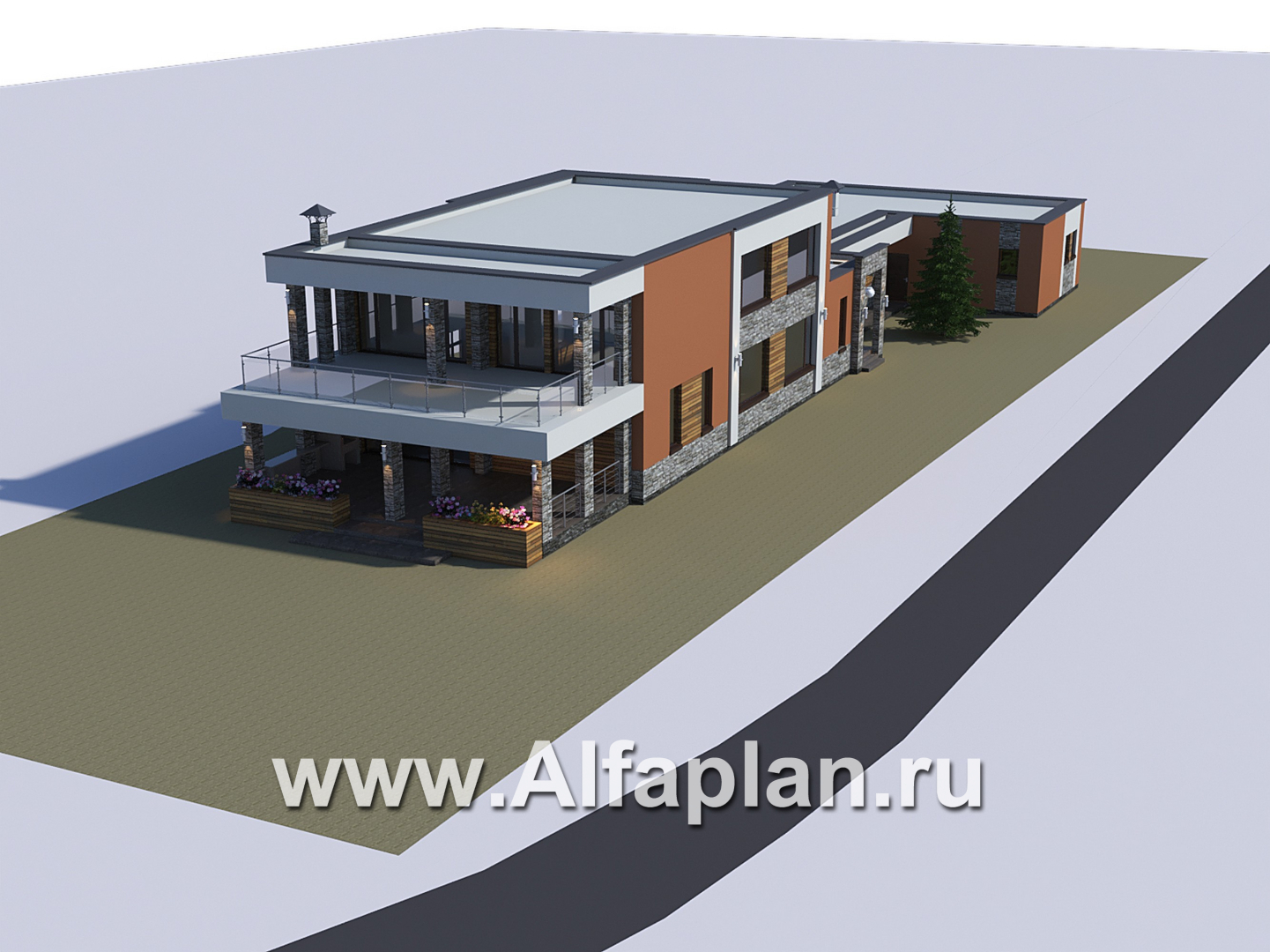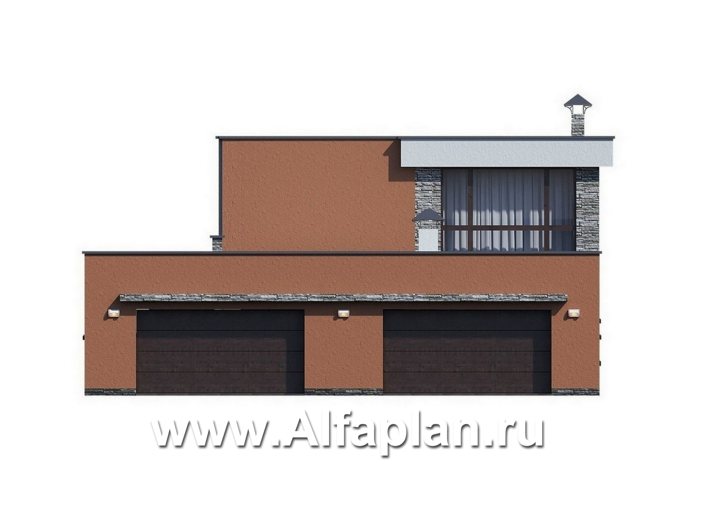 679A «Hot Space» - проект двухэтажного дома в стиле хай-тек, с плоской крышей, вилла со вторым светом, мастер спальня, сауна и гараж на 4 авто