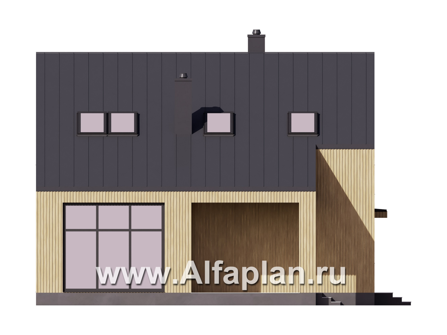 G56c Проект дома с мансардой, планировка с кабинетом и с террасой, в современном стиле