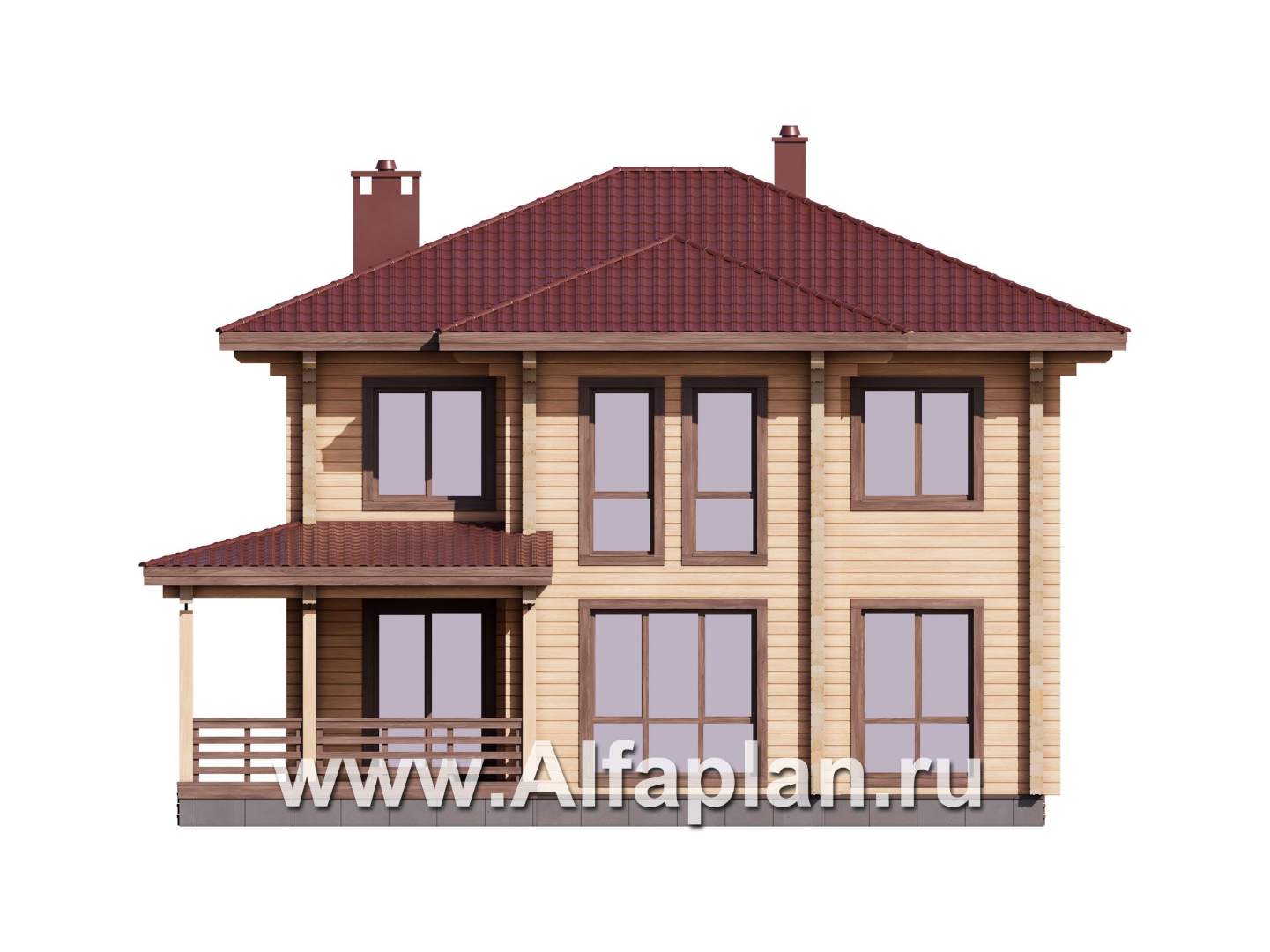 Проект двухэтажного дома из клееного бруса, планировка со спальней на 1 эт, с террасой