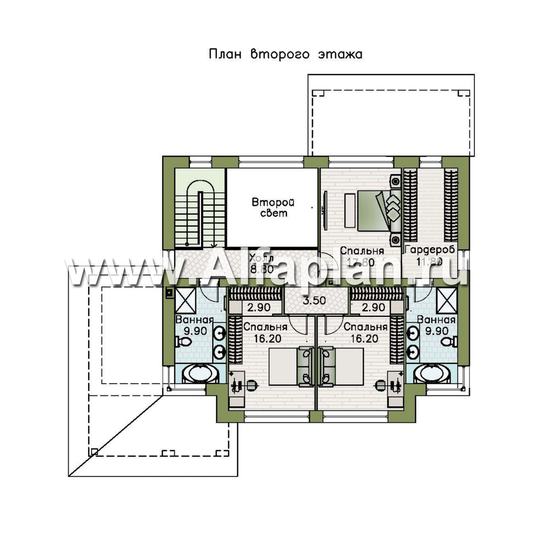 «Серебряный луч» - проект двухэтажного дома, планировка две спальни на 1эт, лестница и второй свет в гостиной, в современном стиле