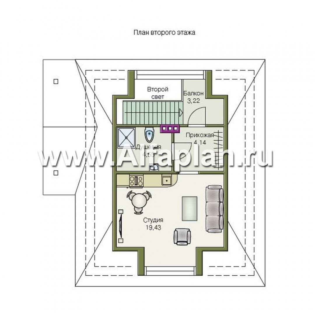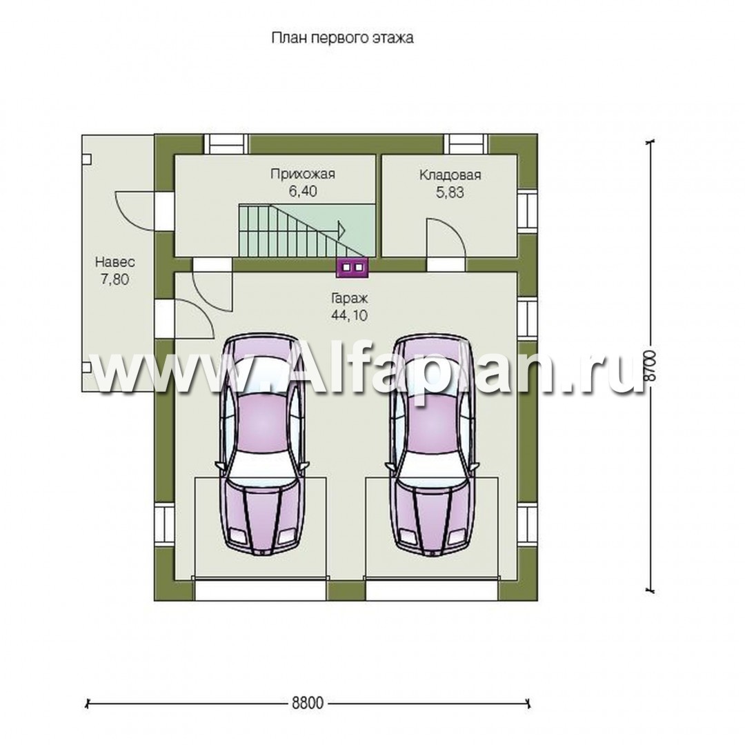 202P-S Проект гаража на 2 авто, со студией в мансарде