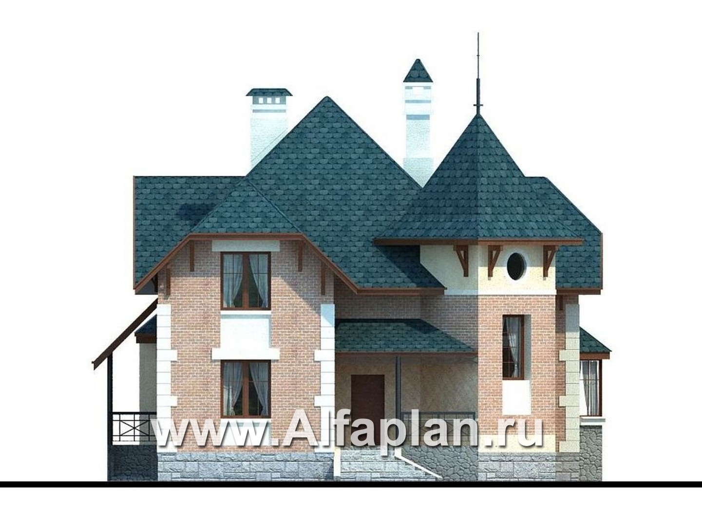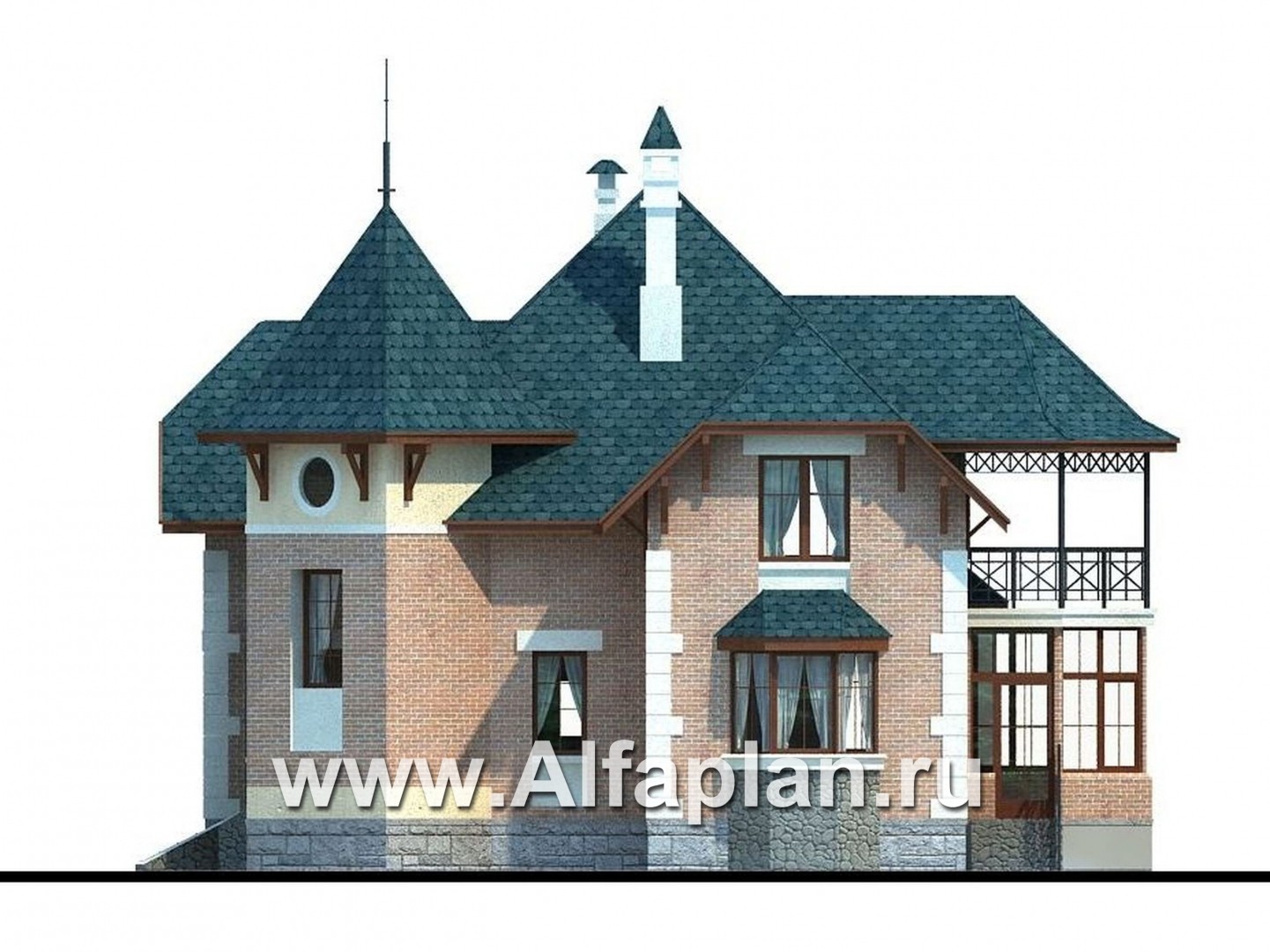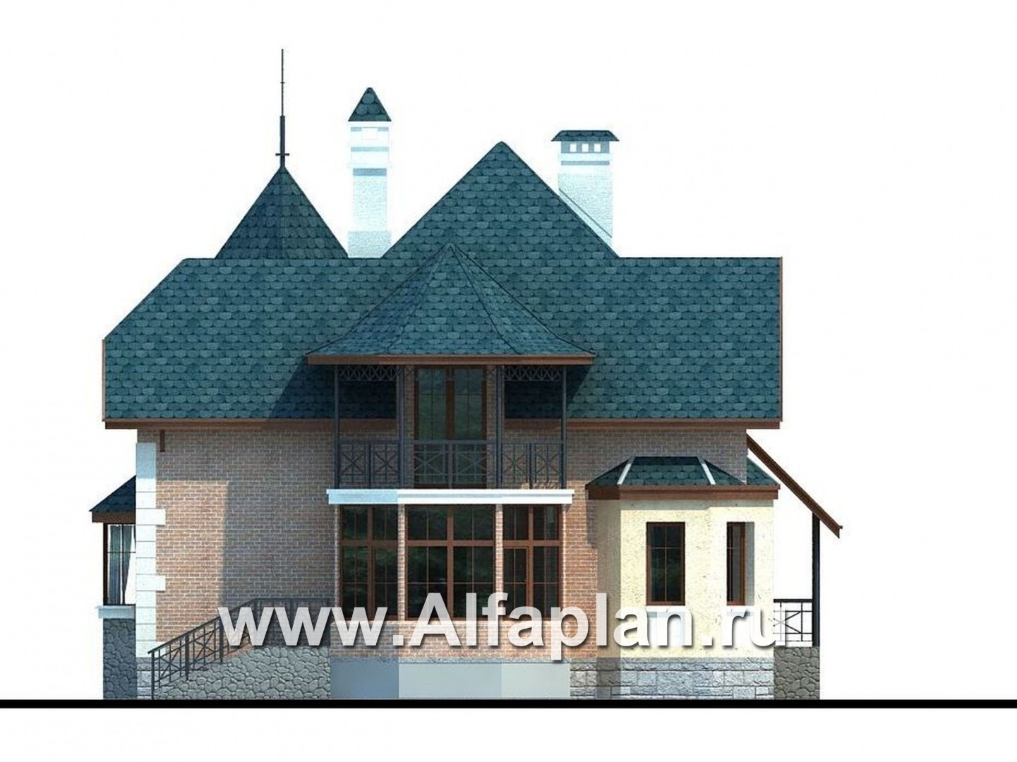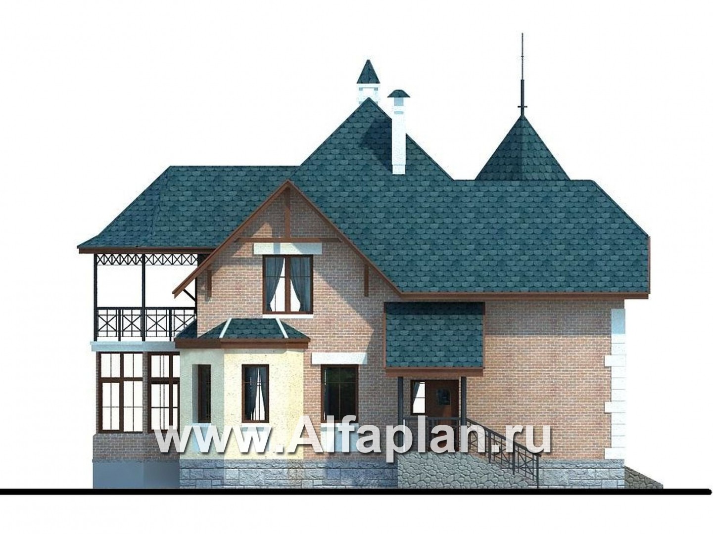 45A-S «Аскольд» - проект двухэтажного дома с террасой, планировка дома по диагонали, в стиле замка