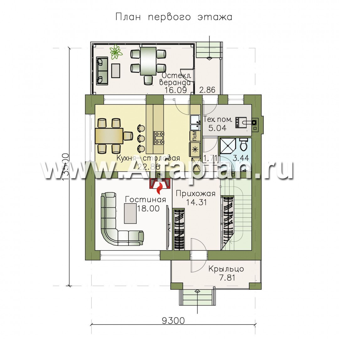 Габаритные размеры дома Ширина на глубину 10 м x 14.05 м