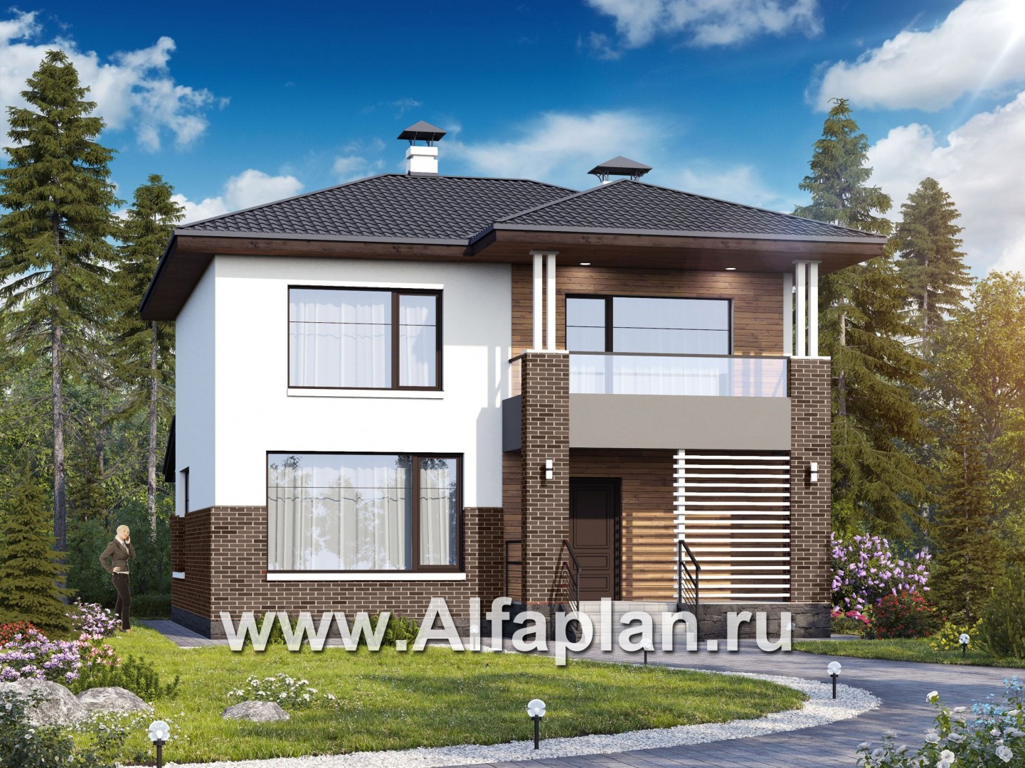 «Орбита» - проект двухэтажного дома, удобная планировка с террасой, в современном стиле