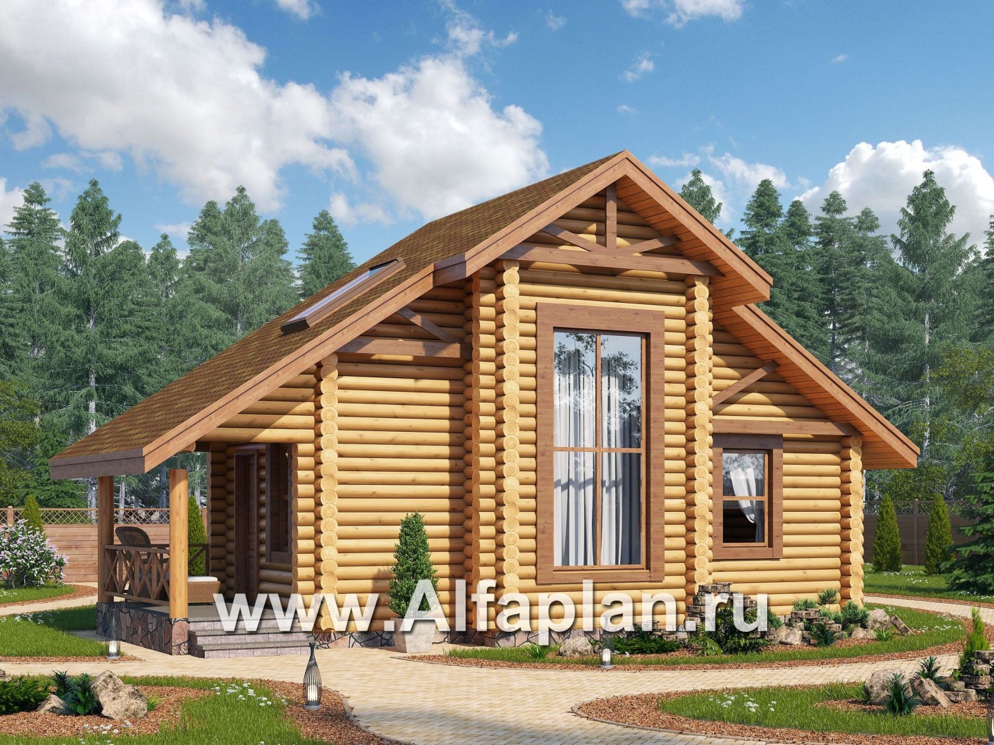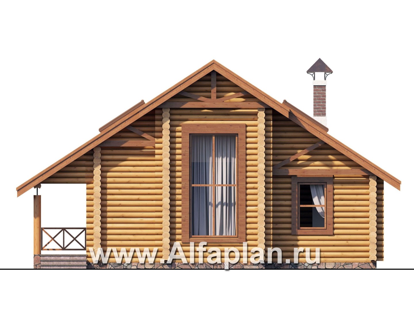 807C-S Проект бани, из дерева, из бревен, с гостевой спальней в мансарде