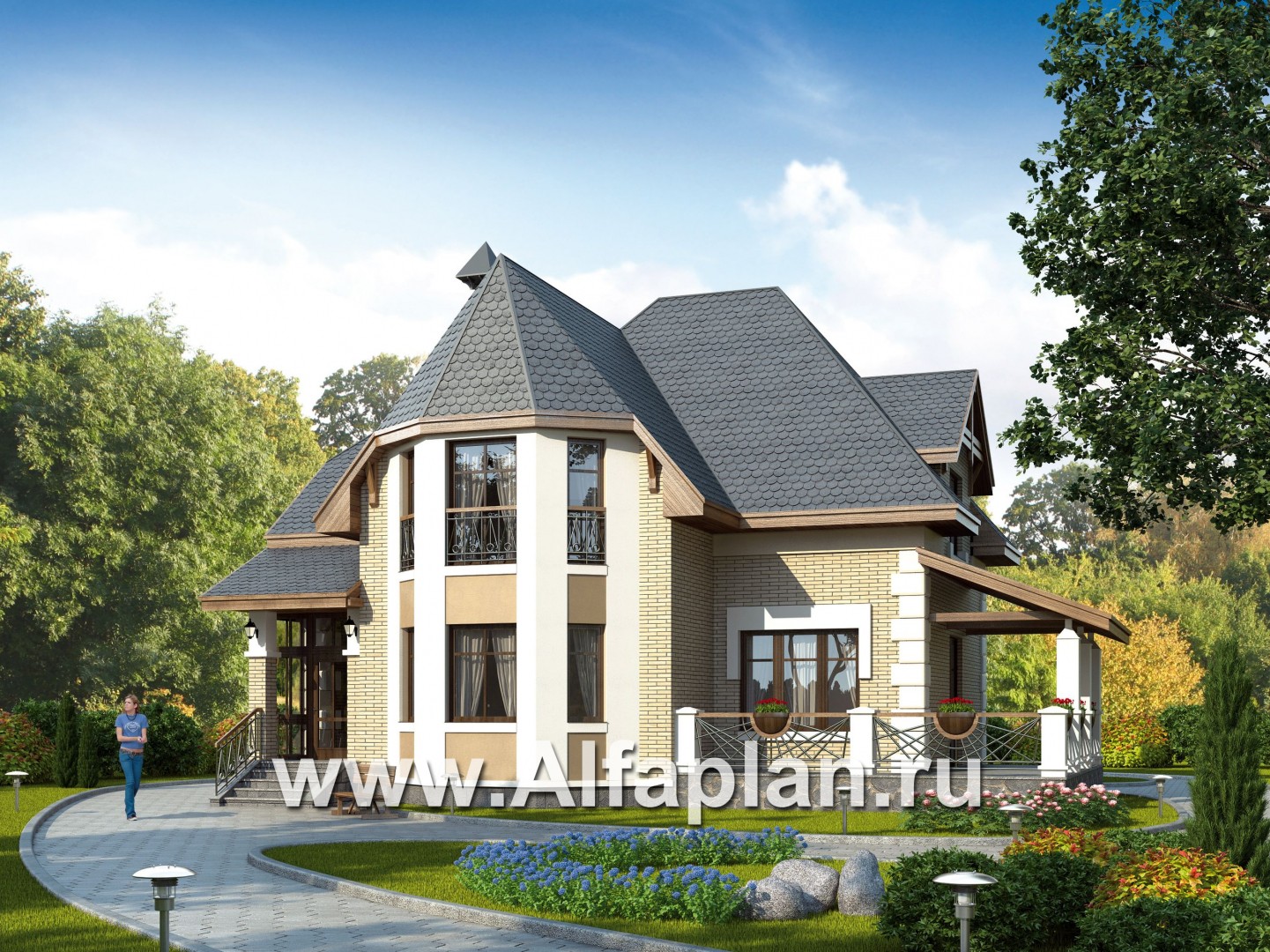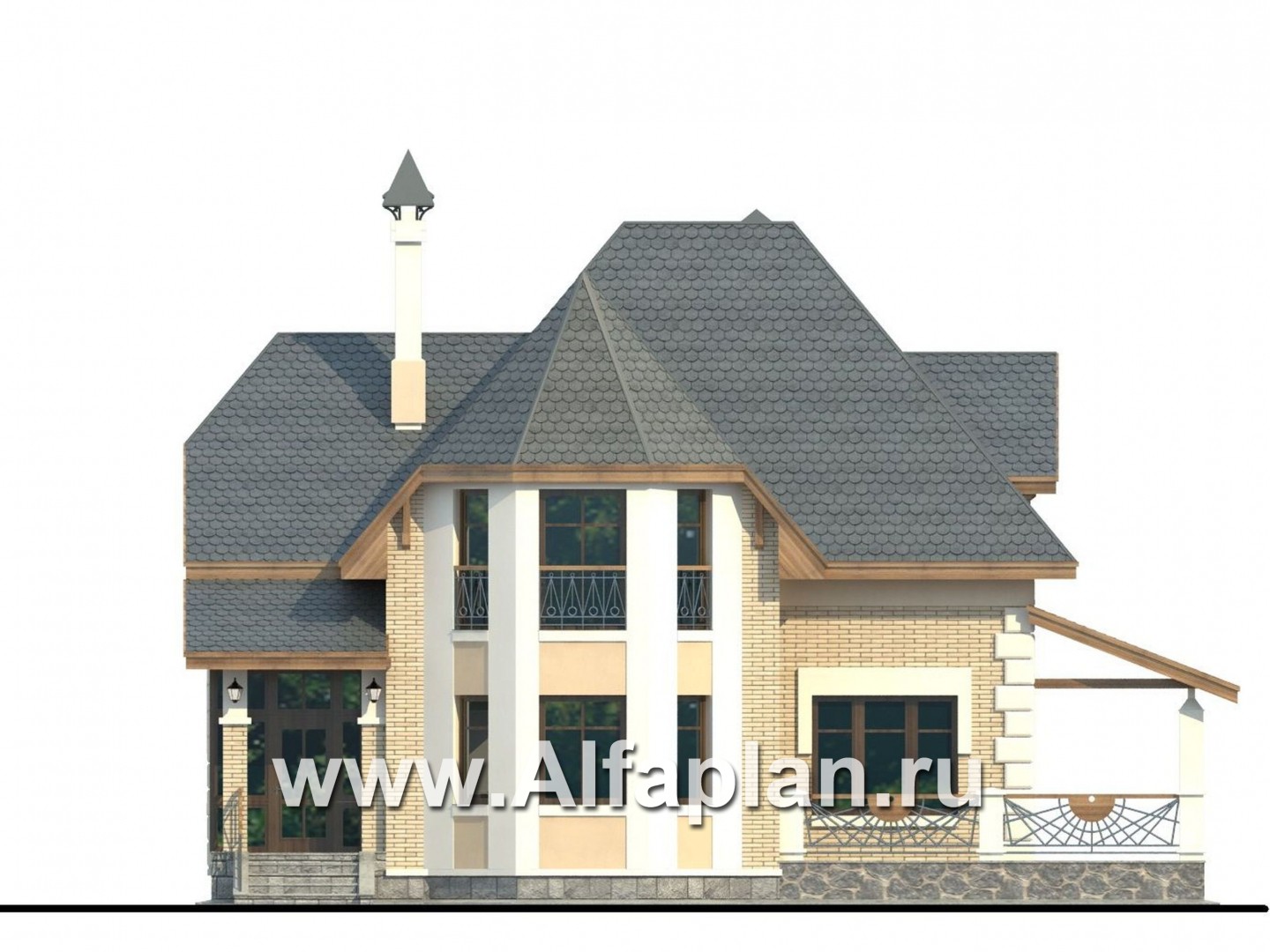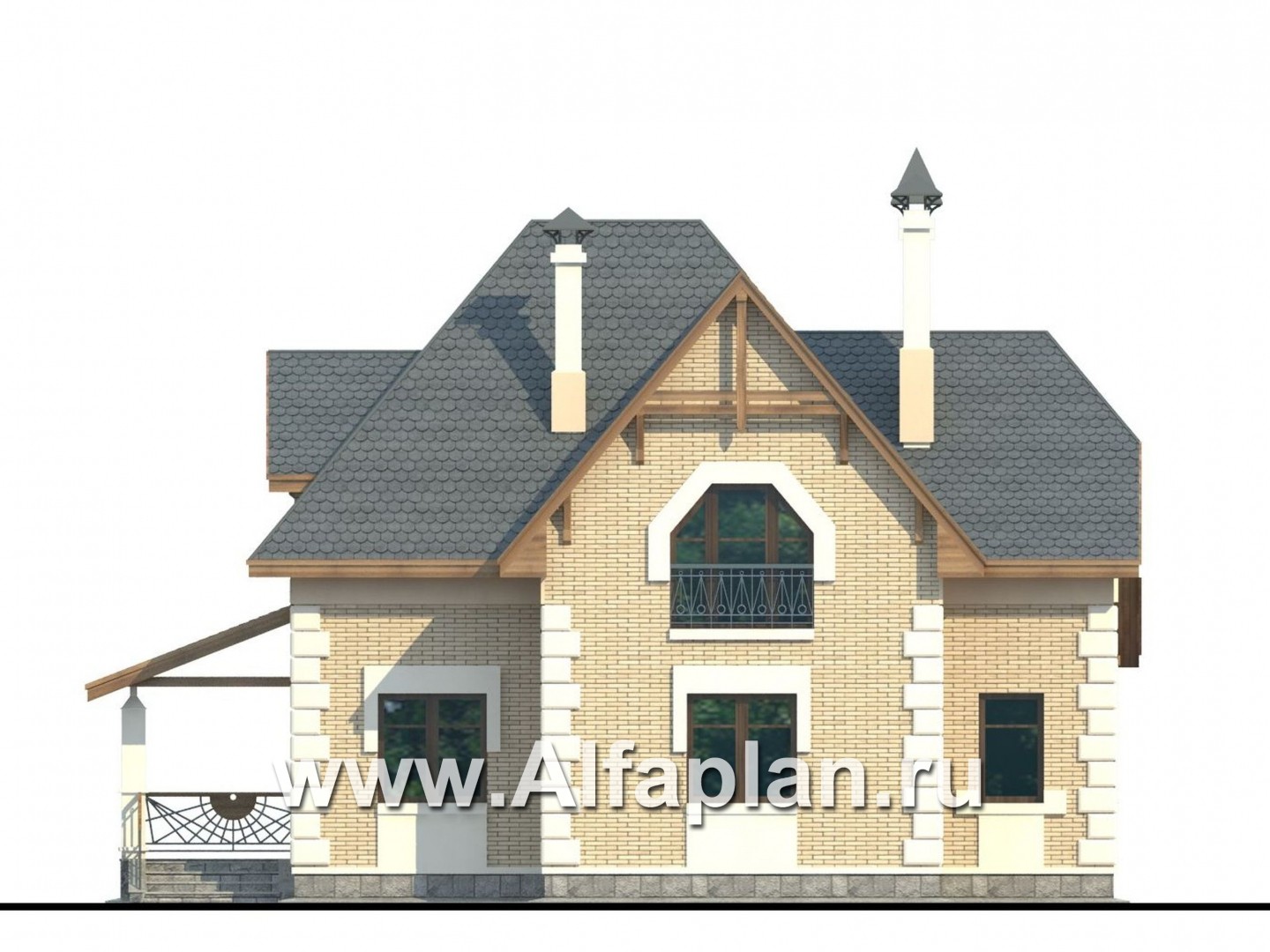 88A-S «Клио» - красивый проект дома с мансардой, с эркером и с террасой