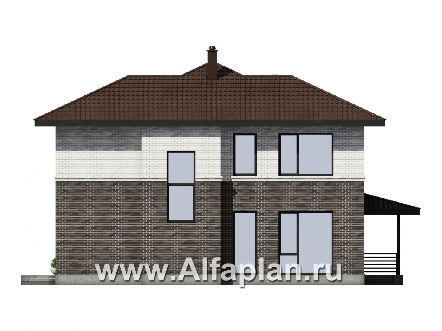 Проект двухэтажного дома из газобетона или кирпича, с террасой и гостевой квартирой