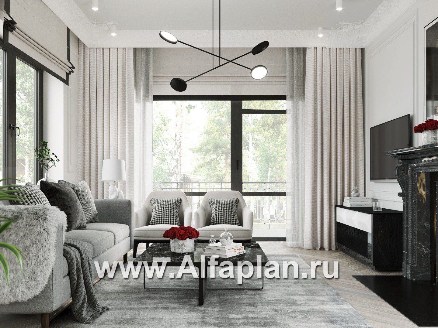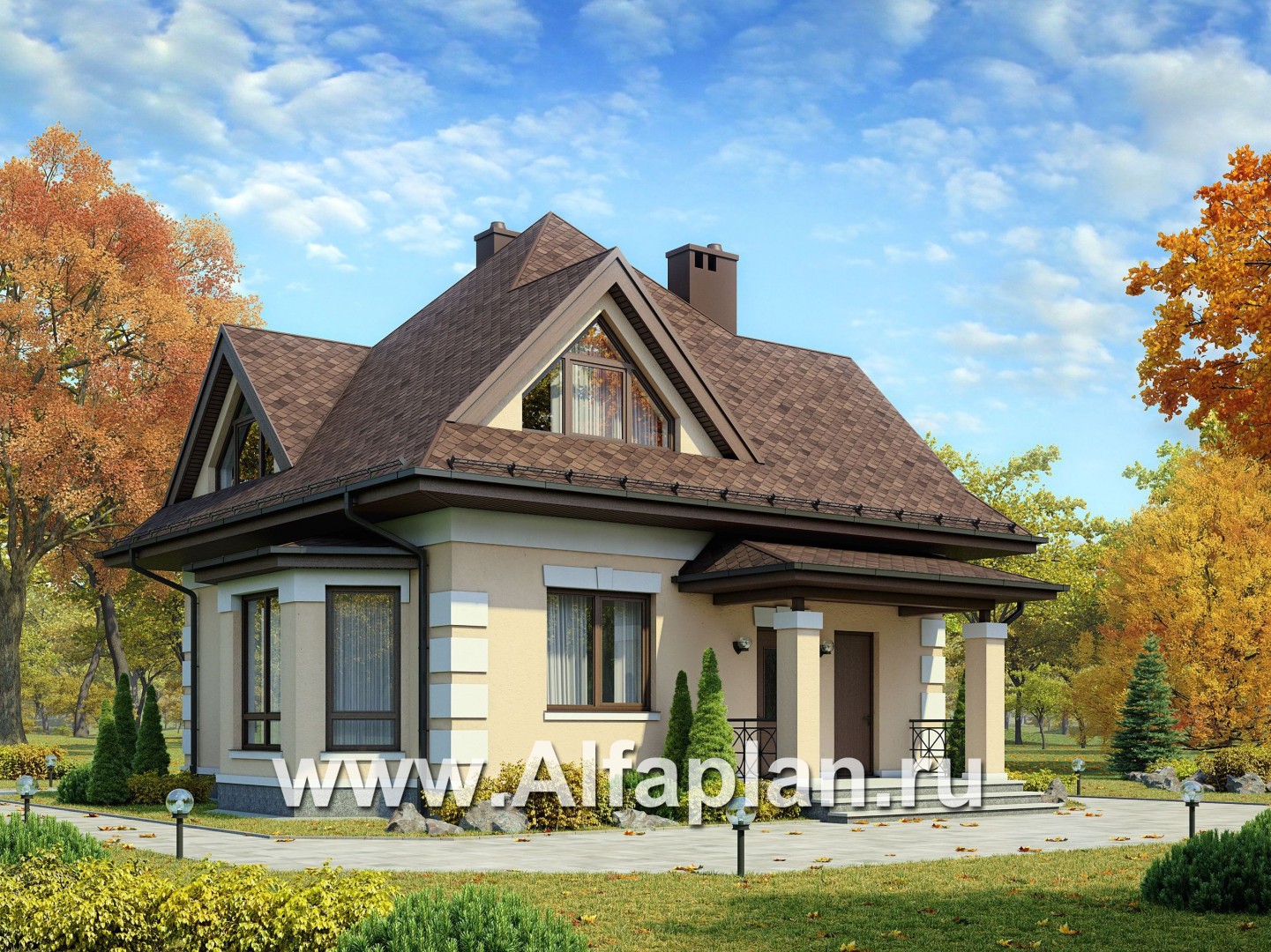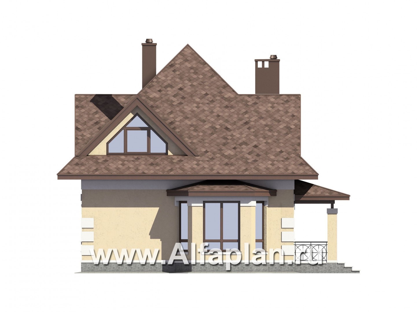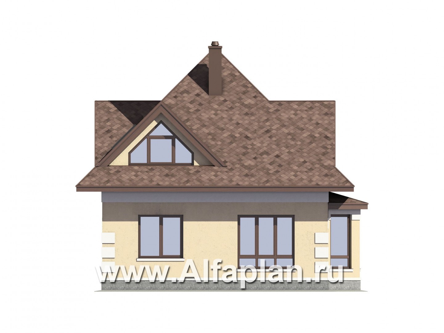Проект дома с мансардой, 3 спальни, открытая планировка с камином и эркером, гостевая комната на 1 эт