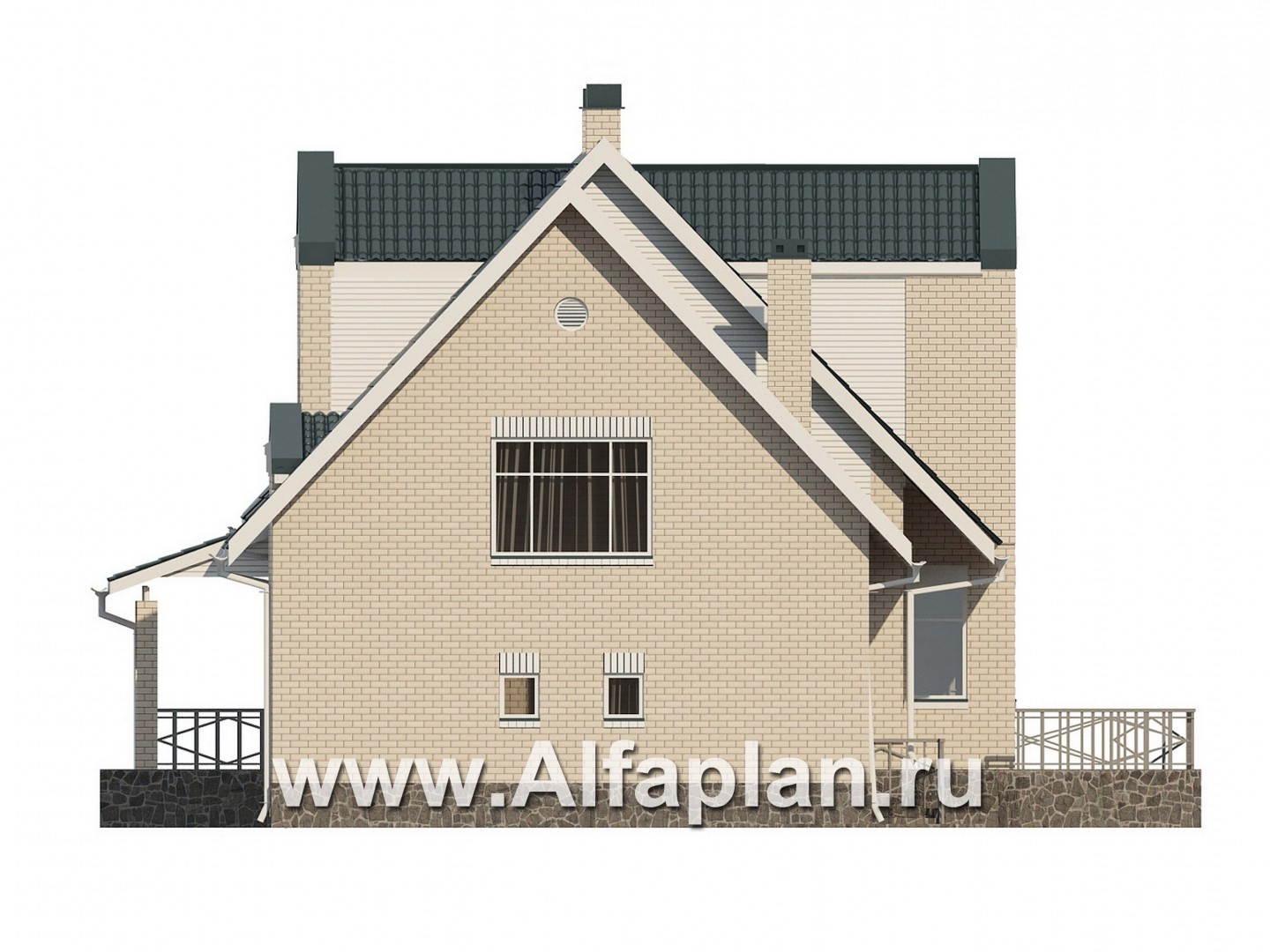 Проект дома с мансардой, из газобетона, с гаражом на 2 авто, с бассейном и сауной в цокольном этаже