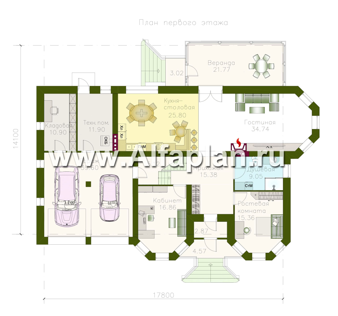 • гостиную — 34 м2;