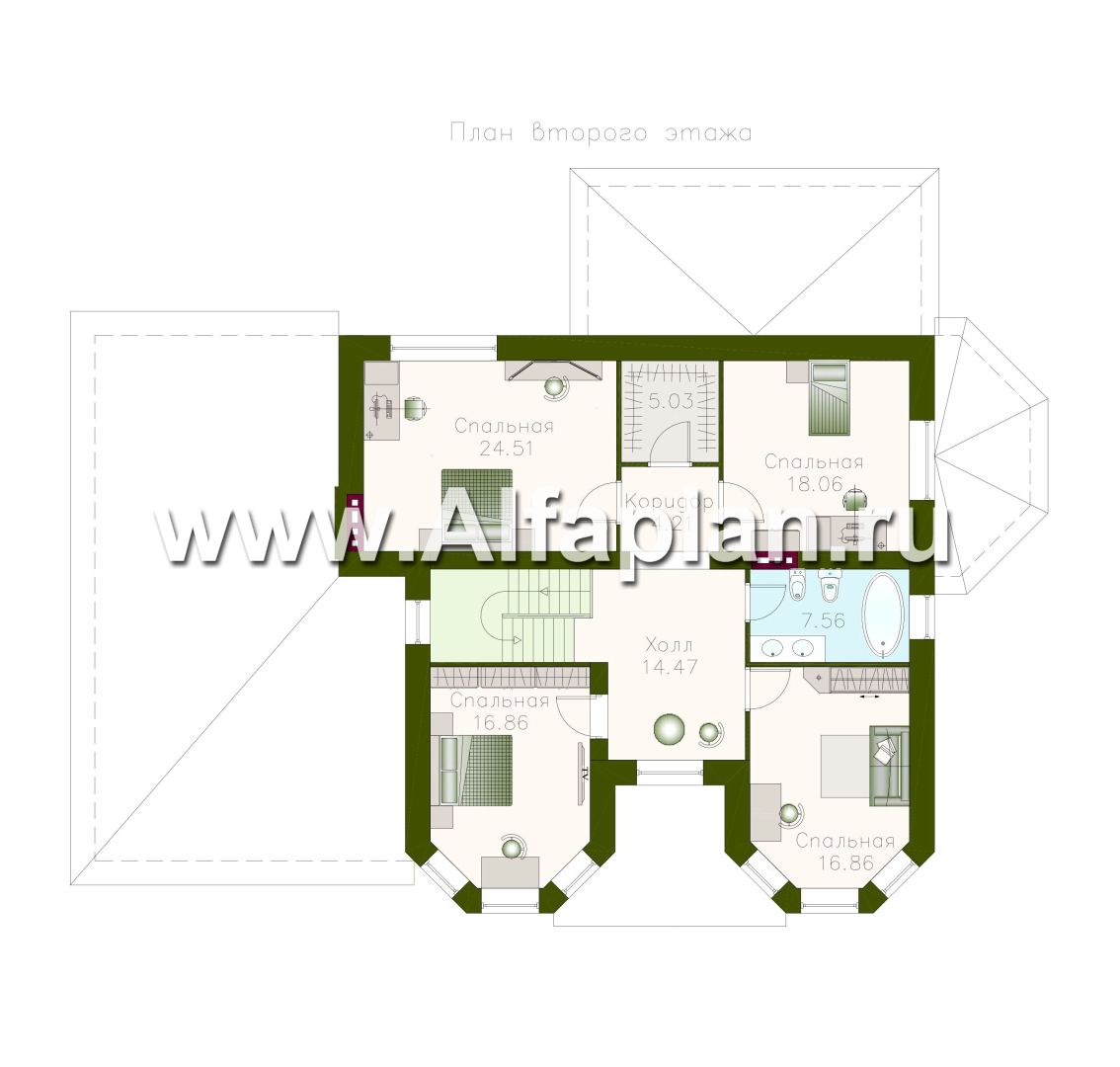 Что касается второго этажа, то здесь проектировщики предусмотрели целых четыре просторные спальни, общий холл, коридор и гардероб. Здесь же располагается ванная комната.