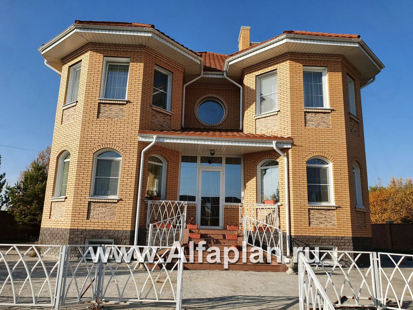 • Крыша отделана битумной черепицей, а фасад декорирован облицовочным кирпичом.