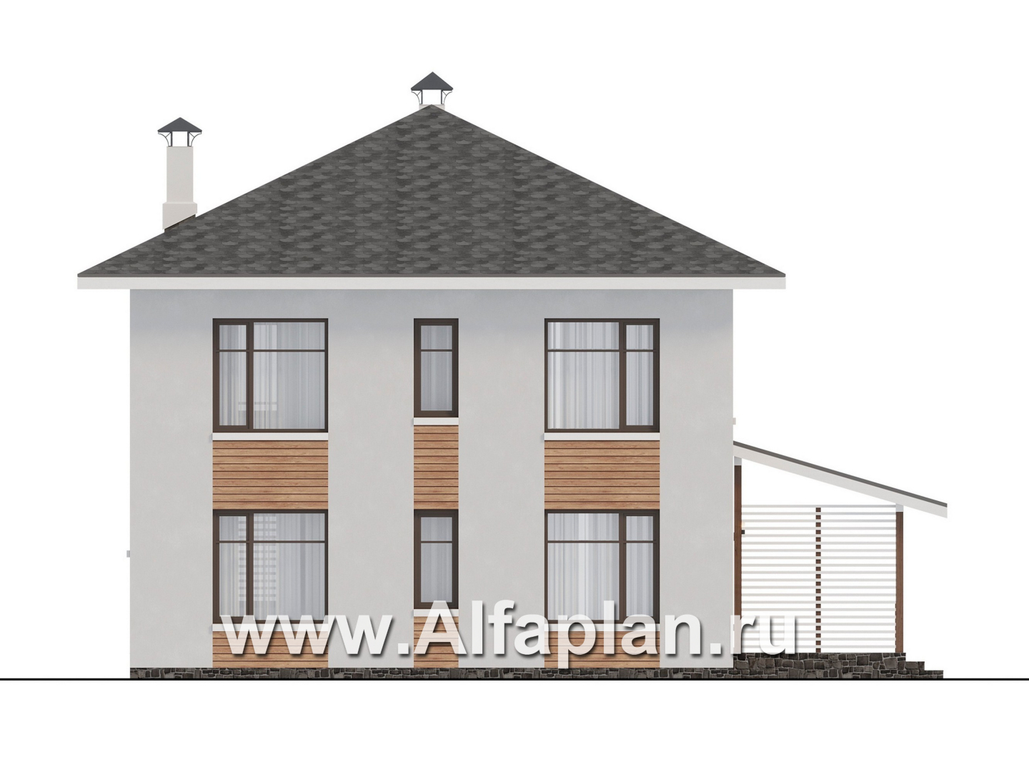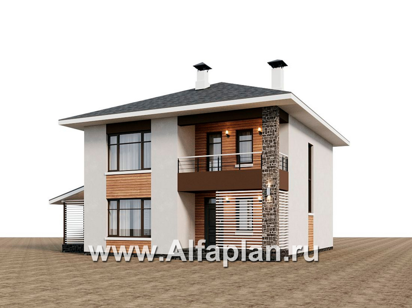 946A «Ильмень» - современный проект двухэтажного дома из кирпичей, с террасой на боковом фасаде