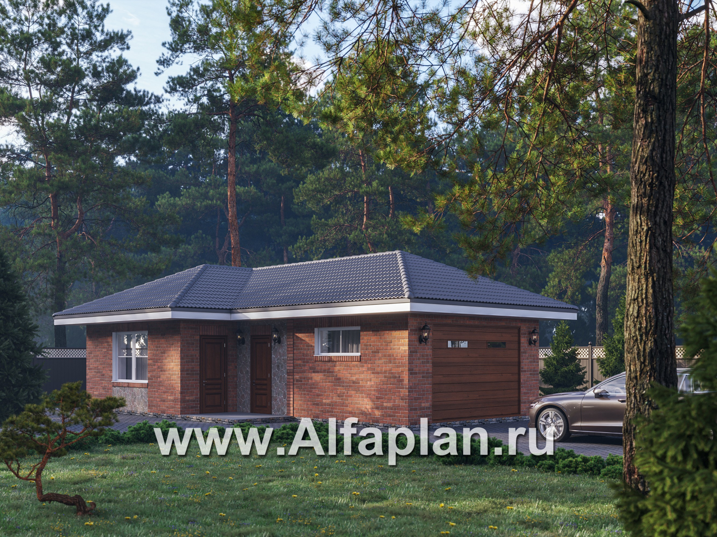 265P Проект гаража на 2 авто, с мастерской и электрогенераторной, в немецком стиле (баварская кладка)